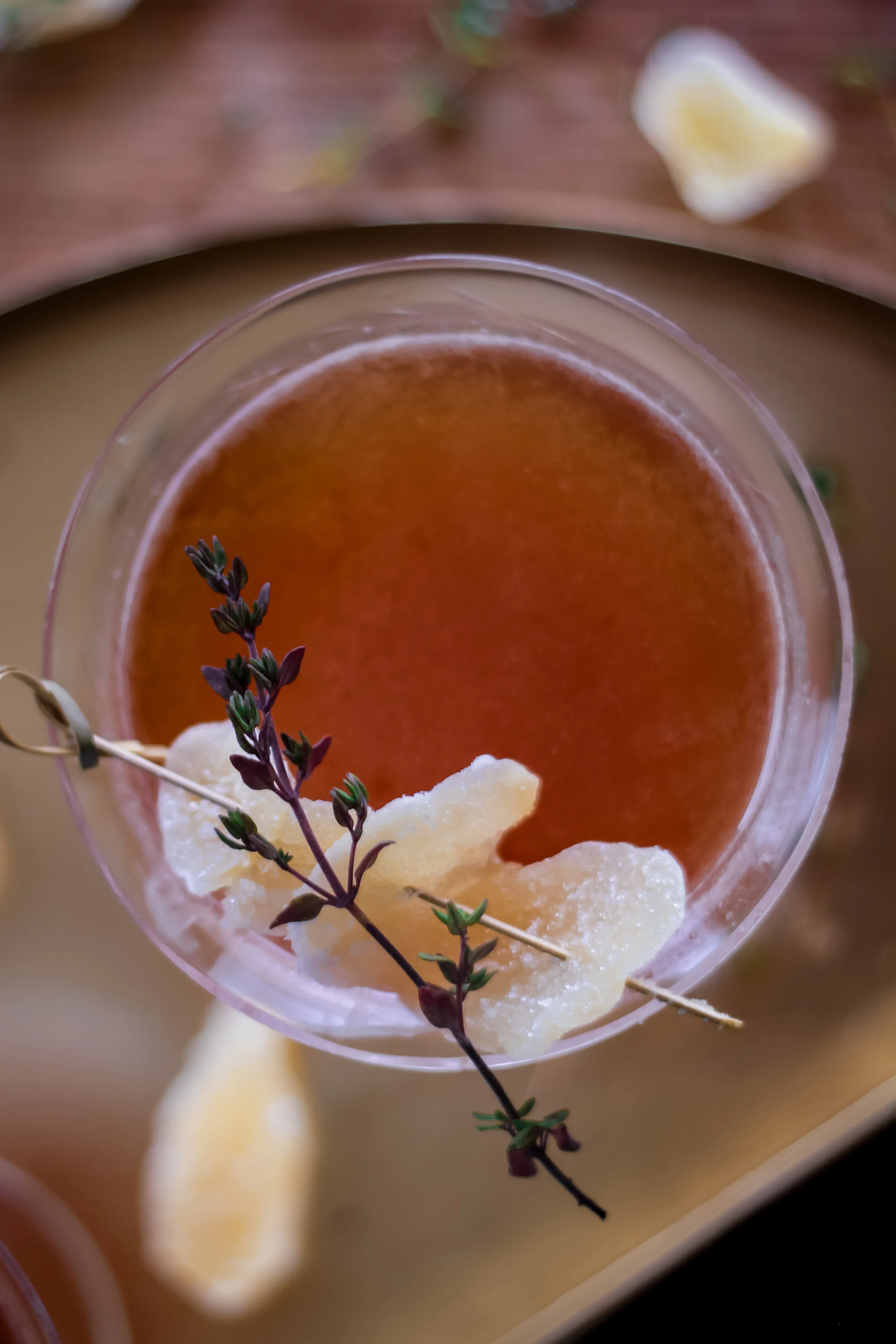 A lot of fall and winter cocktails rely heavily on pie spices, like cinnamon - which, don’t get me wrong, I love - however, I really wanted to find a different angle for a seasonal cocktail that checks all the right boxes. After digging around on ye ole interwebs, I discovered a drink called the Toronto cocktail. A really wonderful drink centered around rye whiskey and fernet. I knew it was love at first sip, so I got to work playing with a version of my own. After some trial and error, I finally settled on this Ginger Herb Toronto.