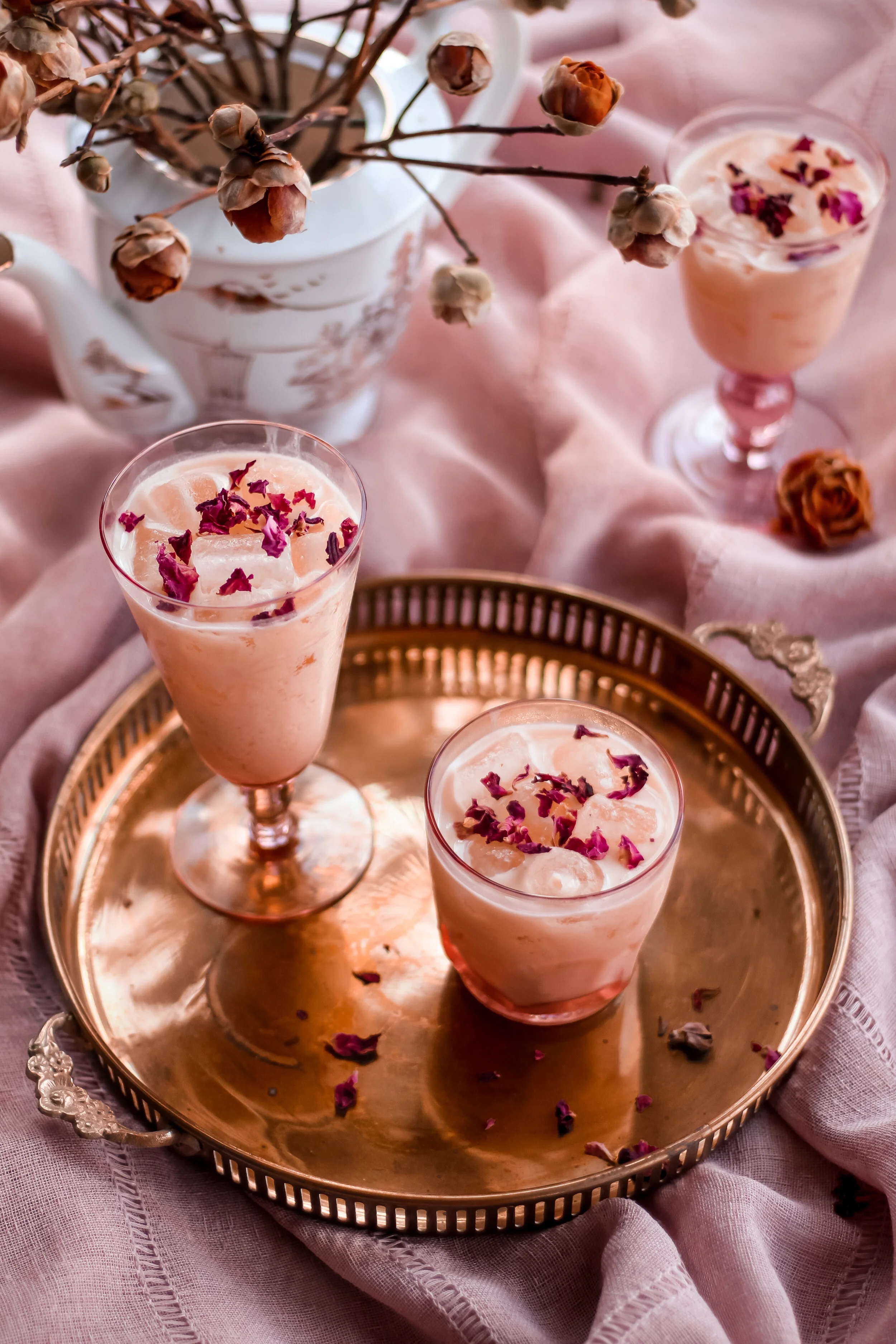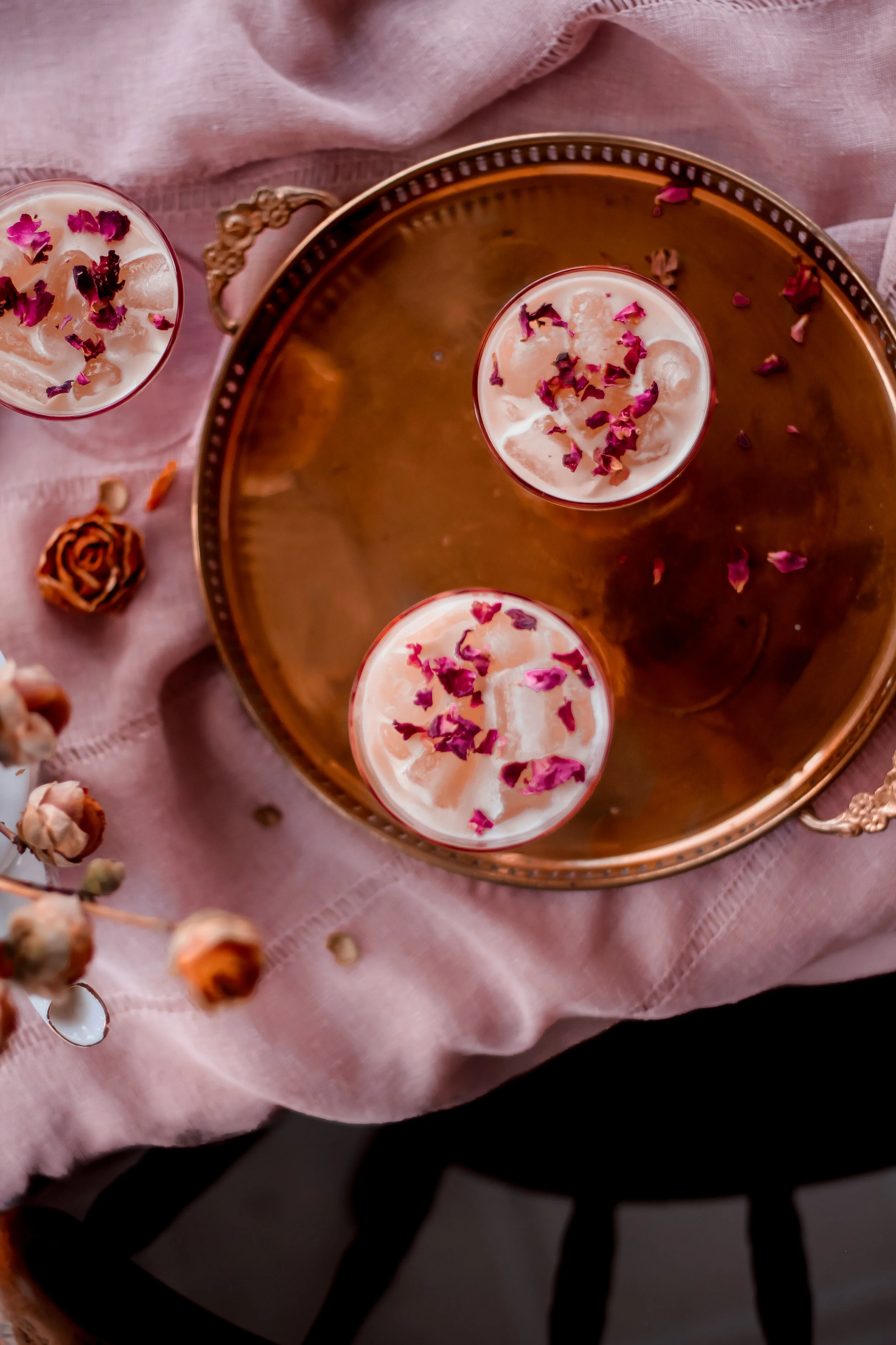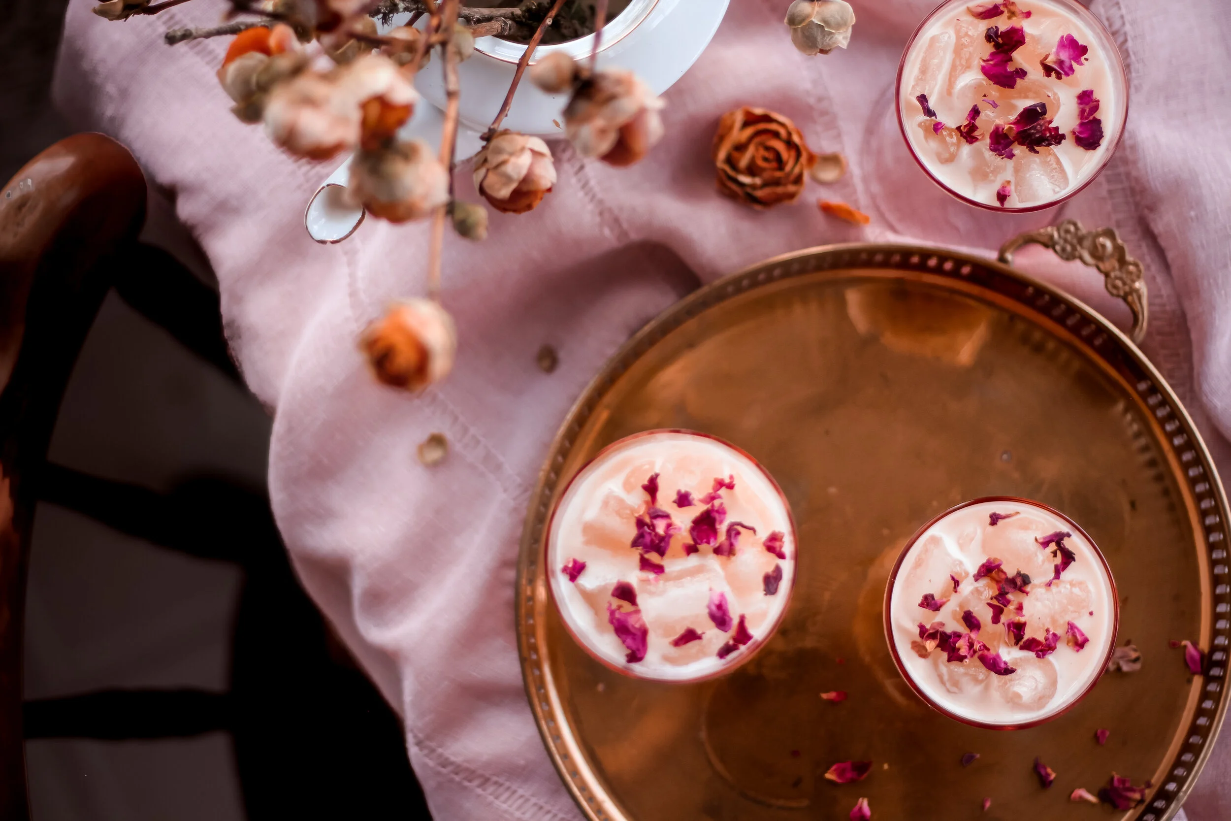 Optional garnishes: dried rose petals or lemon peel