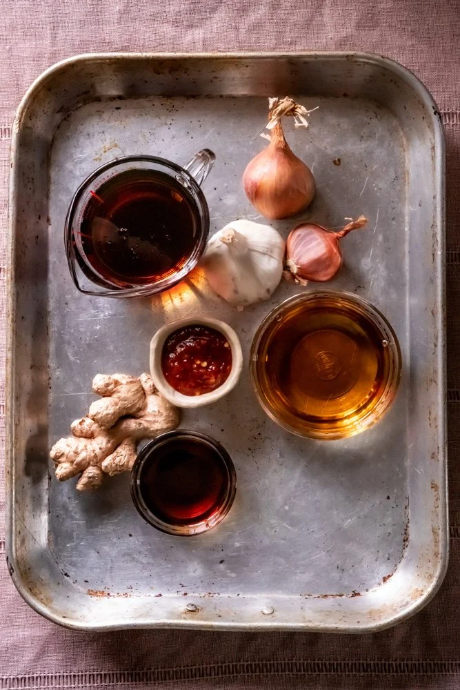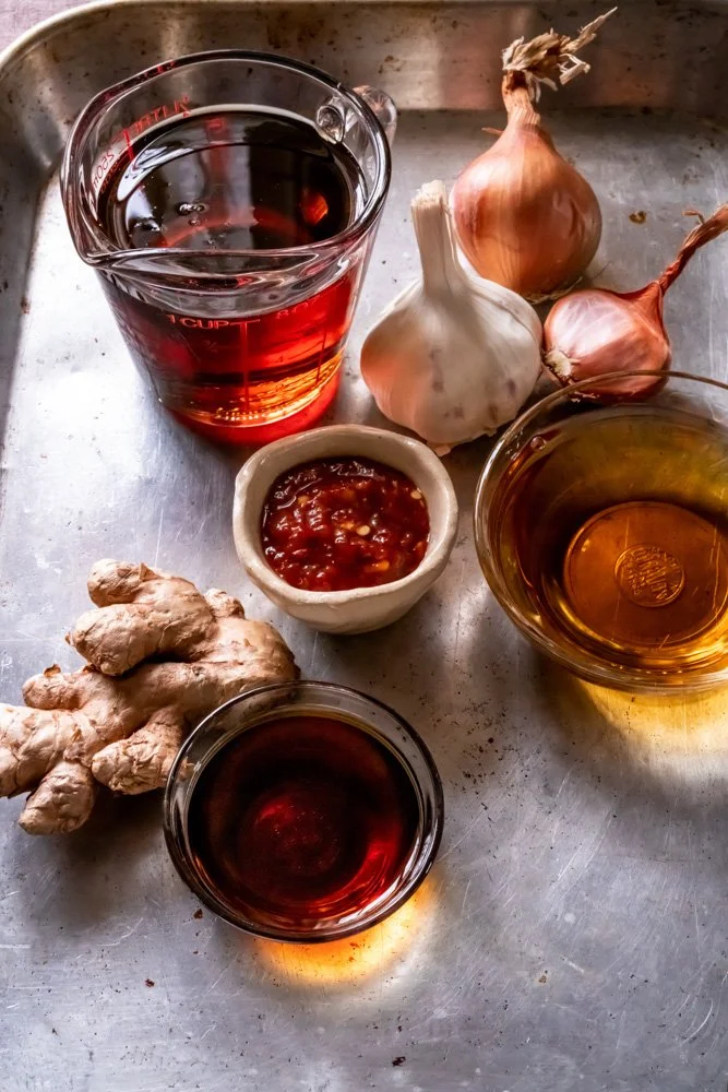 I originally started to develop this recipe just to be a component for my honeynut squash recipe. But once I started working on it, once I finalized all the elements - bourbon, maple syrup, fish sauce, garlic, shallot, ginger, chili paste - my mouth started watering. I couldn’t help but imagine this glaze on chicken wings or drumsticks. On short ribs. Baby back ribs. On sweet potato, or cabbage, or broccoli, or cauliflower, or Brussels sprouts or on anything and everything!!