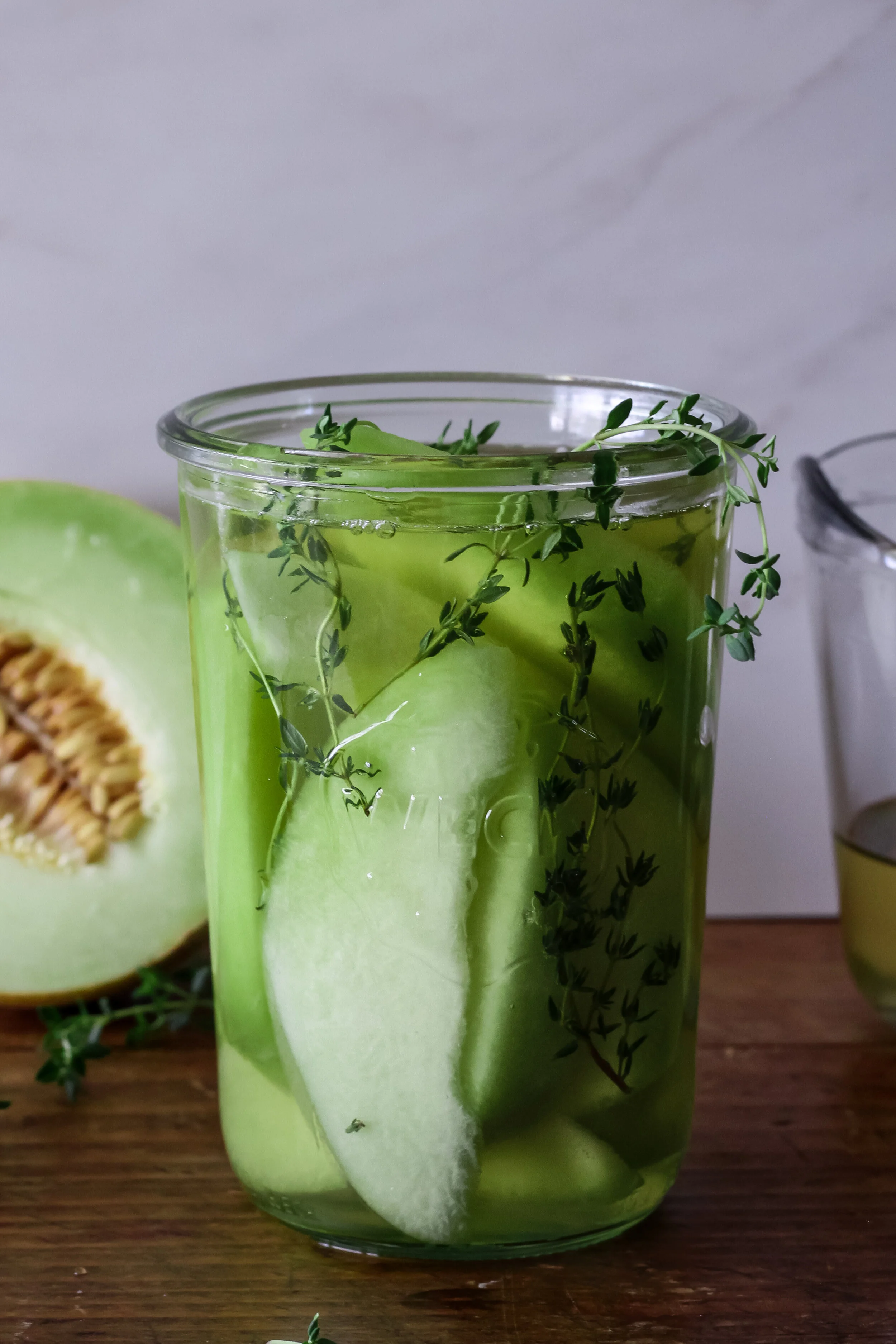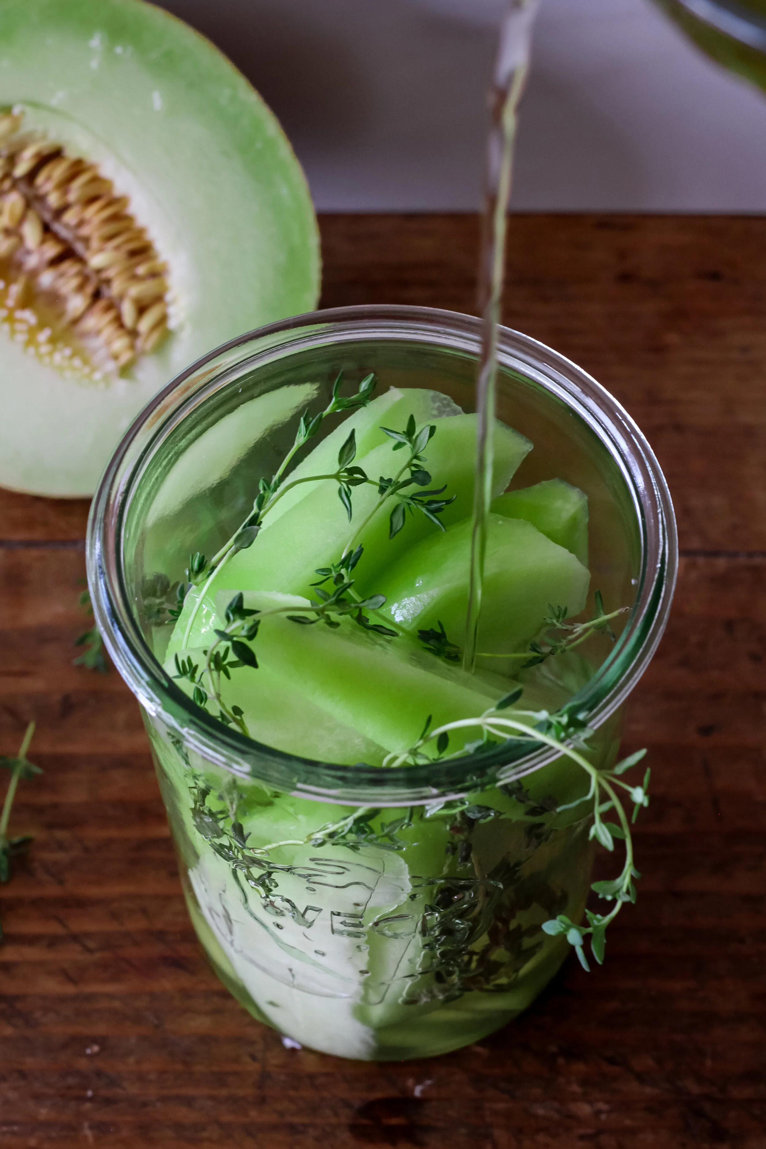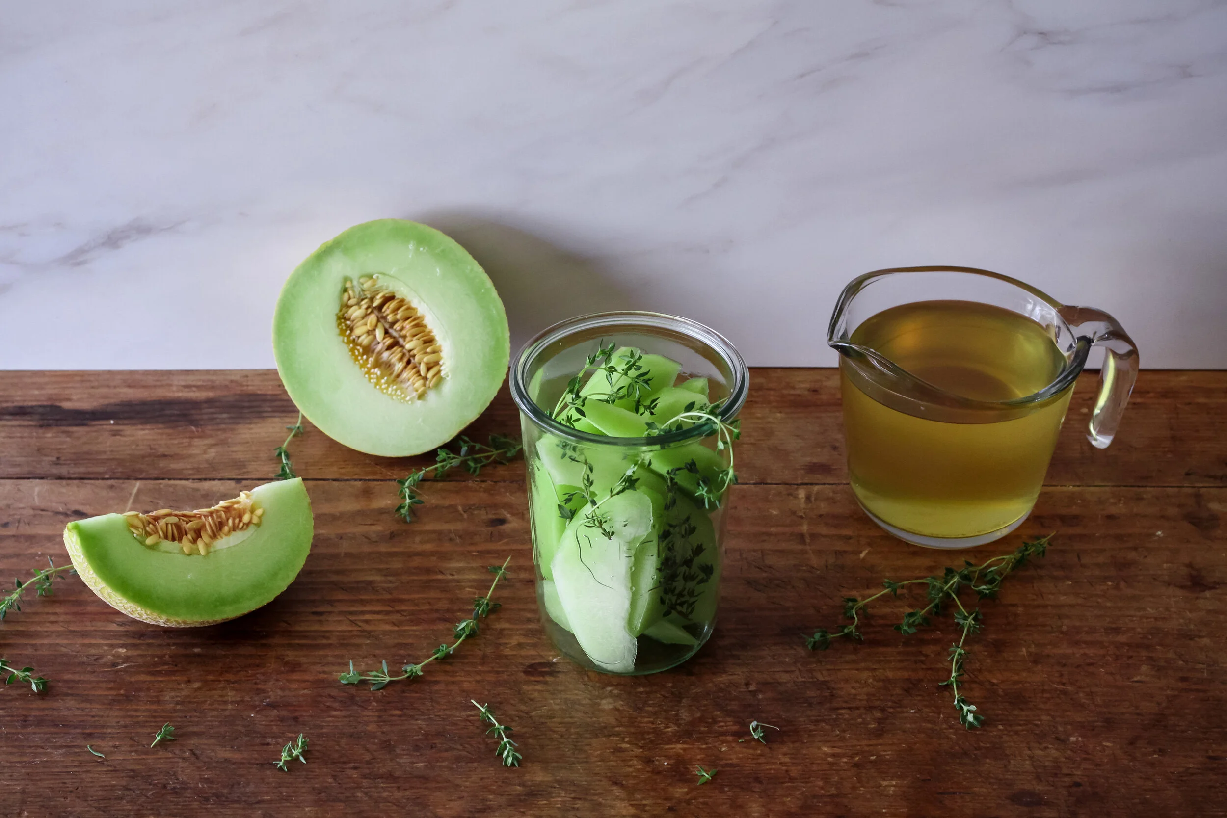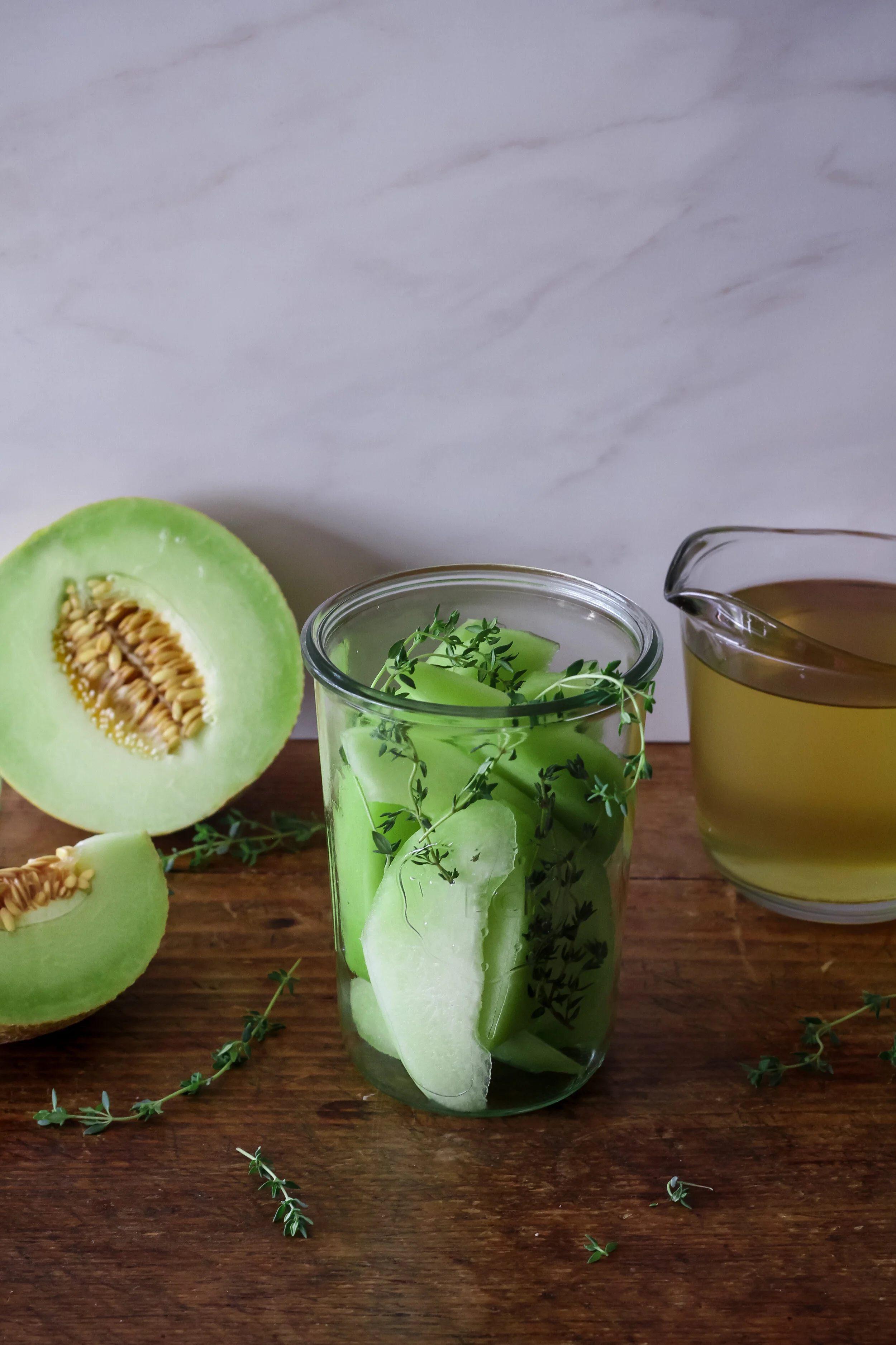 Combine melon, thyme leaves, sugar, and apple cider vinegar in a blender. Blend until fully combined.