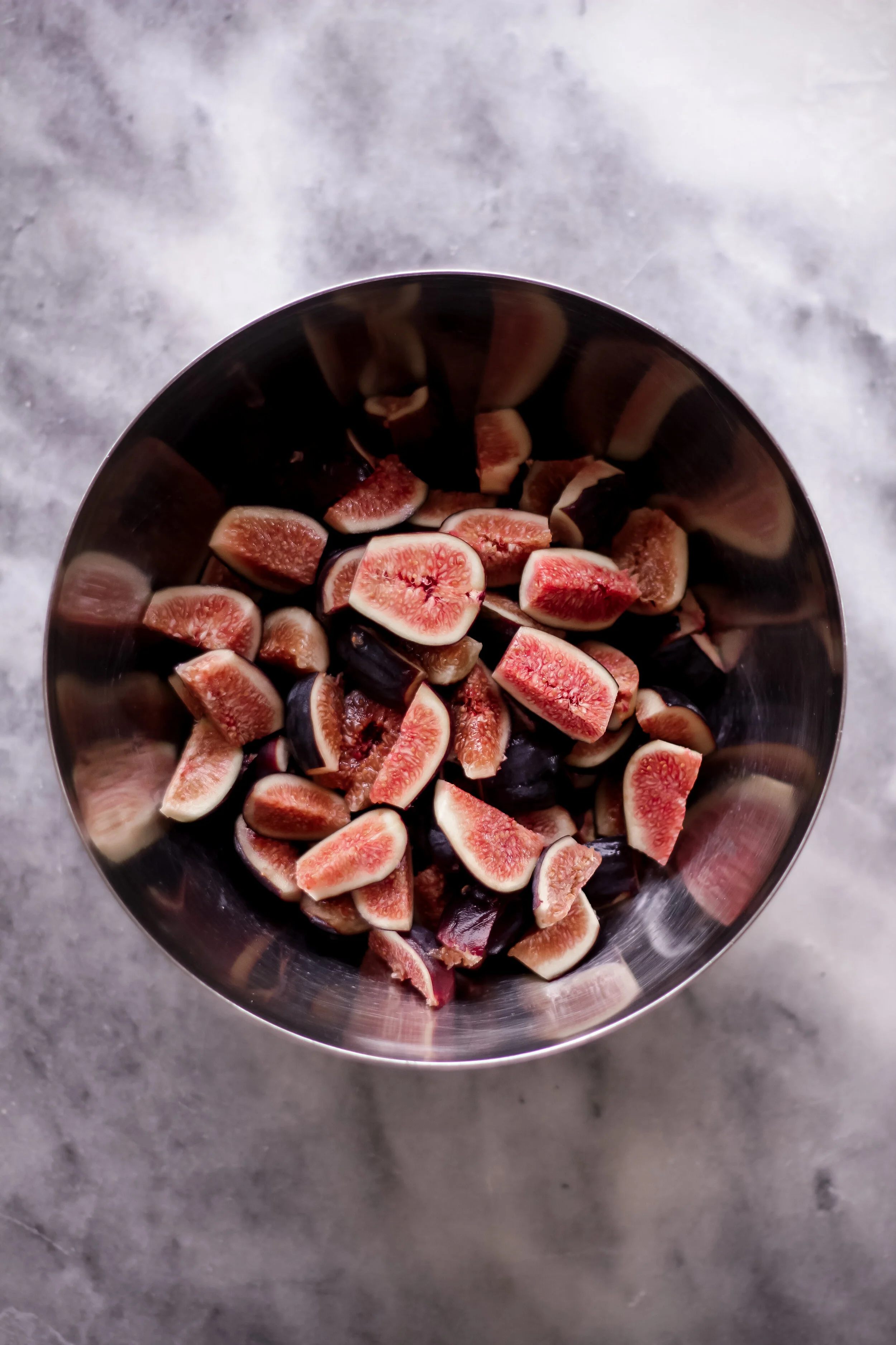 - Heat a medium saucepan over medium high heat. Combine figs, rum, orange juice and zest, grated ginger, and a pinch of salt. Stir to combine and bring to a boil. Once boiling, reduce heat to medium low. Simmer for 10 minutes, and then stir in candied ginger. Simmer for another 10 to 15 minutes or until liquid has reduced and compote has thickened to a jam-like consistency then remove from heat.